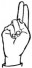 На ћирилици написано ЕВГЕНИЈЕ ПРИБИЋЕВИЋ састоји се из 18 слова [?]. Исписано ћириличном једноручном азбуком за глувонеме:
